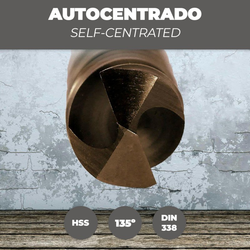 - Fabricada en aleciaón de HHS y coblato garantiza una durabilidad mayor que las brocas convencionales, así como una superior capacidad de corte, durabilidad y resistencia.