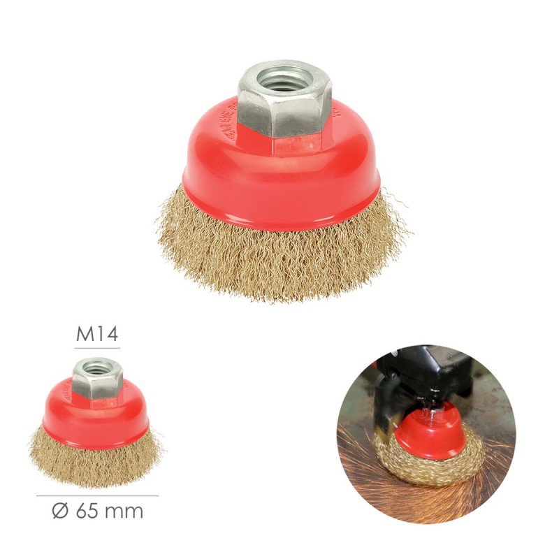 Cepillo Taza Acero Latonado, M14, 65x0,30 mm.