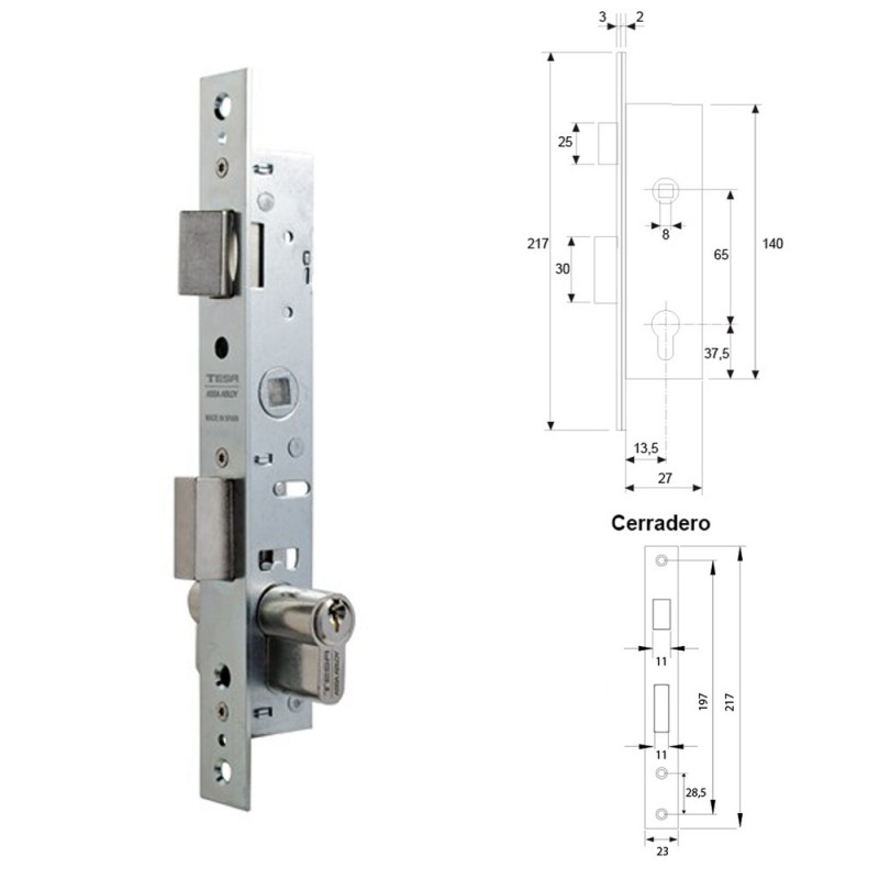 - Cilindro europerfil TE-5 con 3 llaves de acero niquelado.