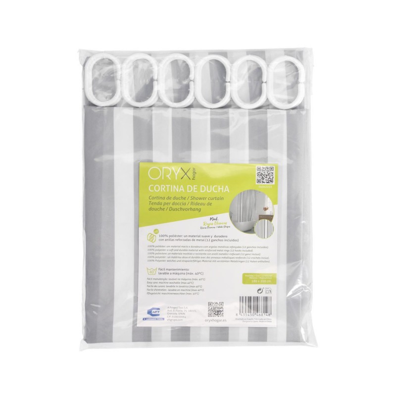 Cortina Ducha Rayas Blancas 180x200 cm. Impermeable