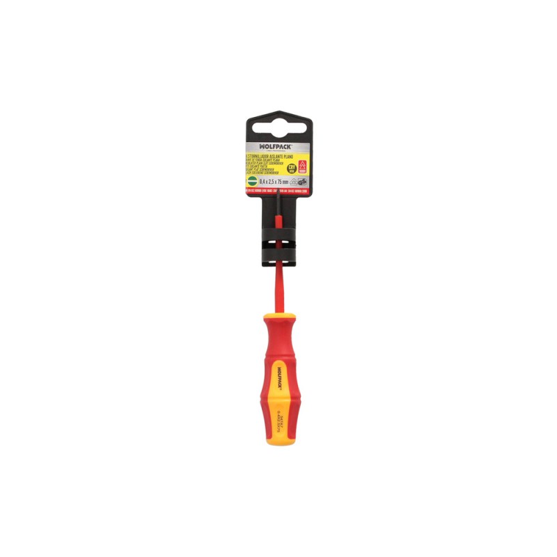 Destornillador Plano Aislado Certificado VDE 1.000 V. Medida 0,4 x Ø 2,5 x 75 mm.