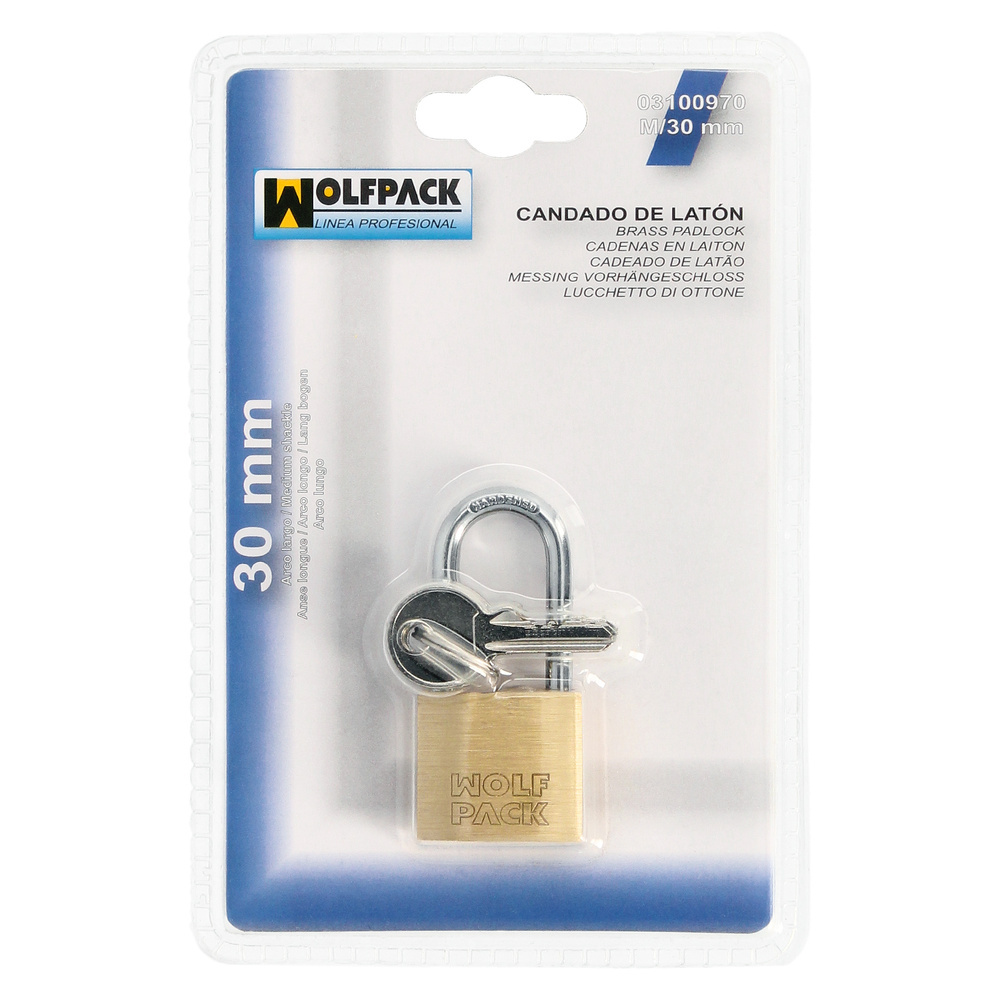 Candado Laton Arco Largo 30 mm. Blister 1 pieza Heavy Duty