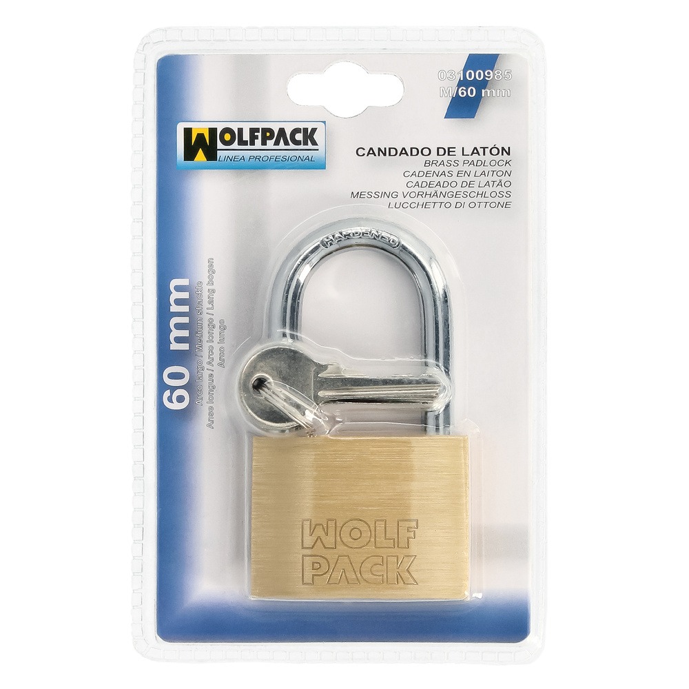 Candado Laton Arco Largo 60 mm. Blister 1 pieza Heavy Duty