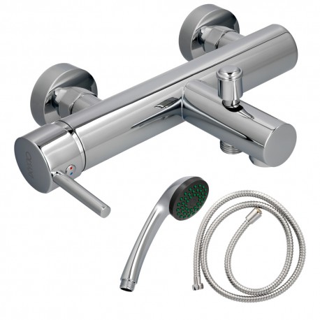 Monomando Bañera / Ducha \"Dresde\" Con Con Flexo y Maneral Cartucho Ceramico Ø 35 mm.