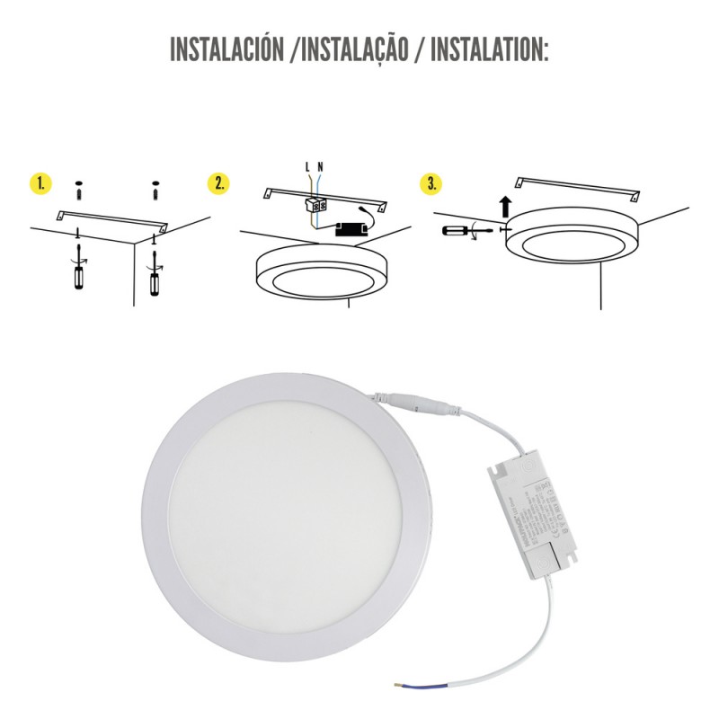 - Artículo también conocido como: Downlight LED de superficie, Panel LED de superficie, Lámpara LED 20W, Downlight LED empotrable, Lámpara de techo LED, Iluminación LED 1800 lúmenes, Downlight LED para interiores, Luminaria LED de 20W, Panel LED de bajo consumo.