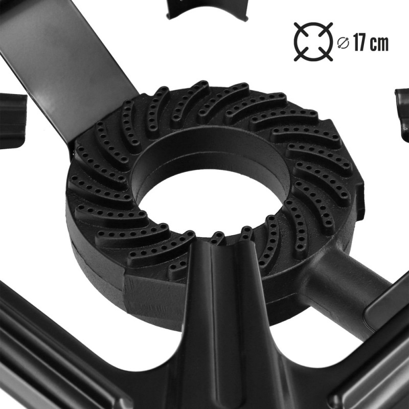 - Cuenta con un quemador de hierro de Ø17 cm que garantiza una distribución uniforme del calor para una cocción perfecta en todo momento.