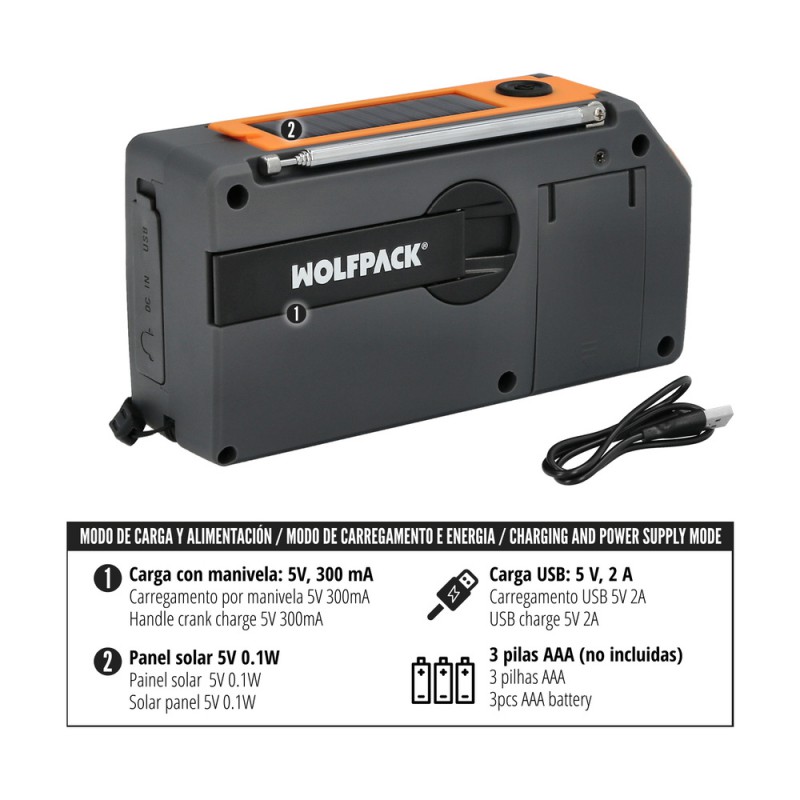 Linterna Led De Emergencia Solar Con Radio, Con Bateria, Carga Manual Dinamo