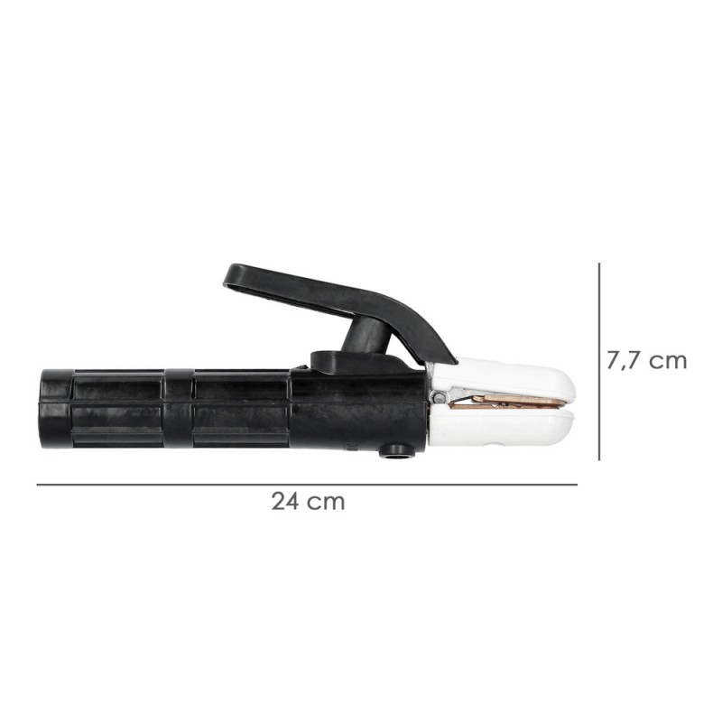 - Artículo también conocido como pinza, pinza portaelectrodo, portaelectrodo, pinza soldar, soporte electrodo, abrazadera de soldadura, etc.