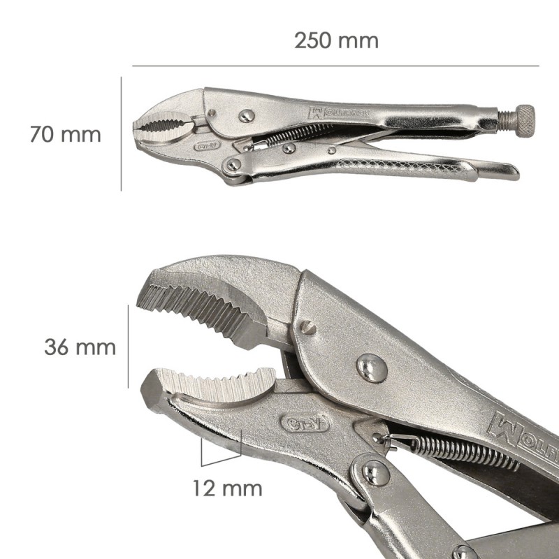 - Articulo conocido como pinza de presion curva, alicates de bloqueo, tenazas de bloqueo, mordaza bloqueable,