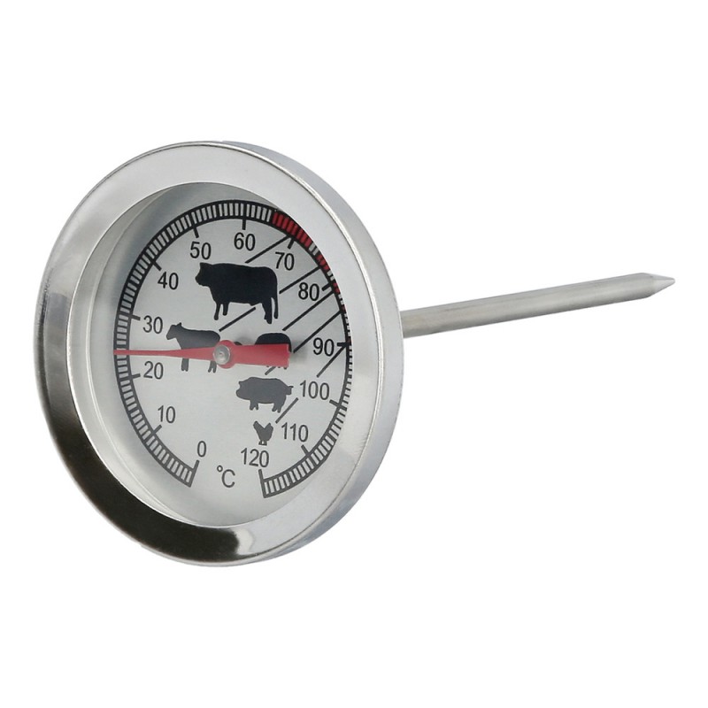 - Con un diámetro de 55 mm, este termómetro cuenta con iconos de animales que te indicarán el rango de cocción ideal para cada tipo de carne, permitiéndote lograr siempre el punto exacto que deseas.