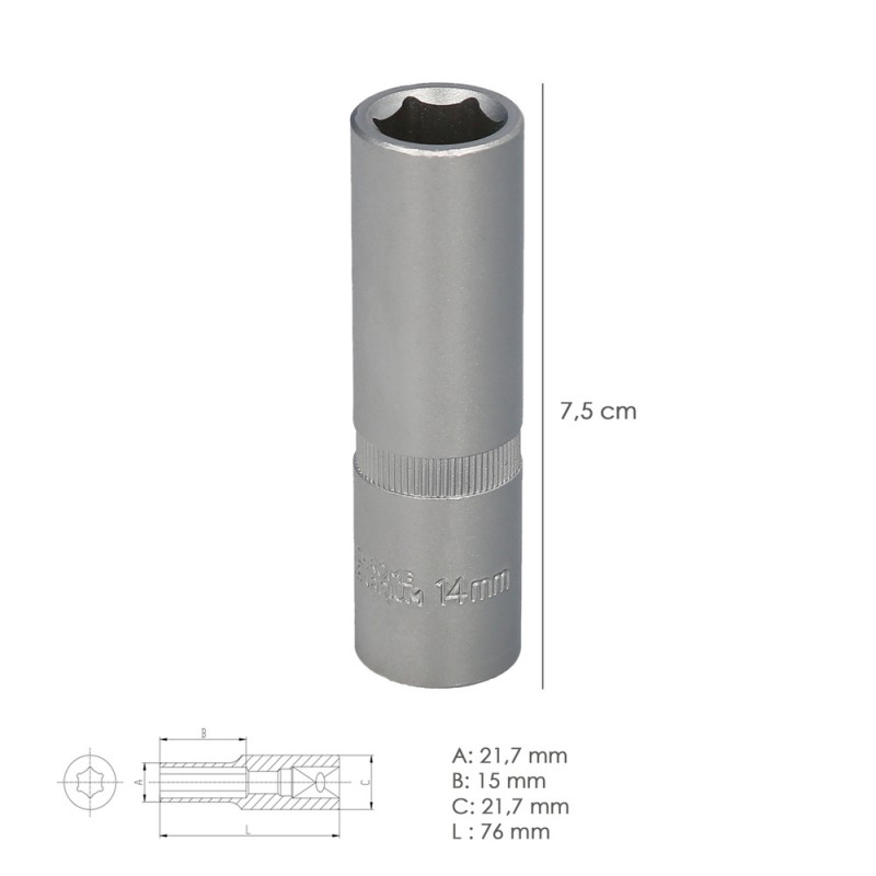 Llave Vaso 1/2 Hexagonal Larga 14 Mm.